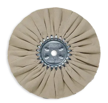 FINAL FINISH BUFF FOR HIGH LUSTER ON ALUMINUM AND STAINLESS STEEL. 5/8″ ARBOR, 10″ DIAMETER. MY MOST POPULAR FINISH PAD. USE A WHITE CHROME ROUGE BAR WITH THIS BUFFING WHEEL; OR, TRY ONE OF THE PLATINUM SERIES ROUGE BARS, SUCH AS THE BLUE MOON ROUGE BAR. THIS BUFFING WHEEL CAN BE FOLLOWED UP WITH AN AIRWAY WHITE DOMET FLANNEL BUFFING WHEEL, OR A 40 PLY WHITE DOMET FLANNEL, WHICH ARE OFTEN USED IN CONJUNCTION WITH THE PRO 40 METAL POLISH FOR A FINAL STEP. AS AN ALTERNATIVE TO THE WHITE UNTREATED BUFFING WHEEL, YOU CAN TRY ONE OF THE COTTON MUSLIN BUFFS (30, 40, 50, AND 60 PLY) LISTED BELOW.